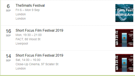 https://www.google.co.uk/search?safe=strict&ei=4Qp2XYmxHYyp1fAPi7Ol2A0&q=short+film+festivals+uk+2019&oq=short+film+festivals&gs_l=psy-ab.1.0.0i71l8.0.0..19130…0.2..0.0.0…….0……gws-wiz.yoQ7dUTTGFY&ibp=htl;events&rciv=evn&sa=X&ved=2ahUKEwiym_i2p8PkAhV2QUEAHamuD74Q5bwDMAF6BAgKEAE#fpstate=tldetail&htidocid=JLWLxePKUA-yqJZpJpA8-A%3D%3D&htivrt=events