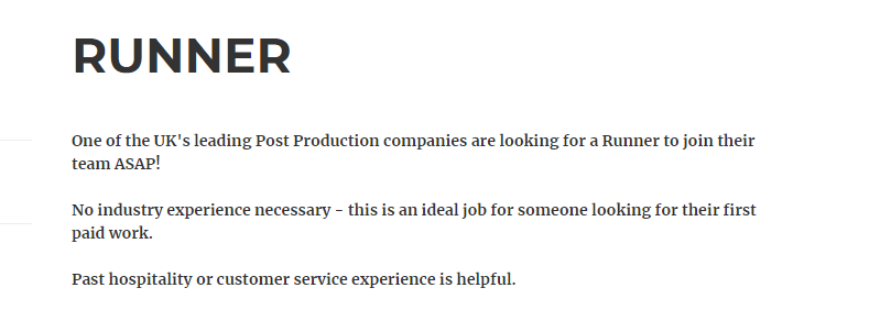 It’s a job for a runner to get coffee or be a assistant