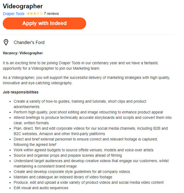 2. Excellent video editing skills – often at pace to tight deadlines. The successful applicant will need to be adept at either Final Cut Pro X or Adobe Premiere.