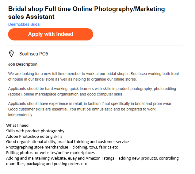Adding and maintaining Website, eBay and Amazon listings – adding new products, controlling quantities, packaging and posting orders etc